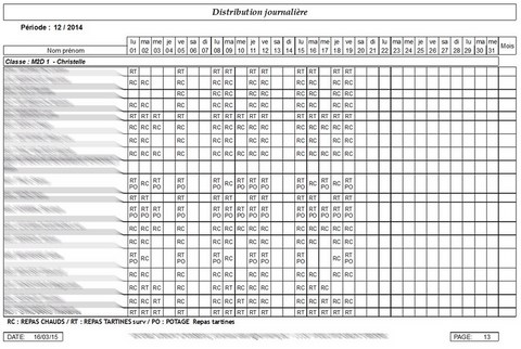 Un listing exhaustif sur plusieurs pages détaille par classe, pour chaque période et par élève, tous les renseignements nécessaires à une gestion quotidienne optimale : montants des repas, produits et services consommés, total de la période, récapitulatif des montants payés par les différents modes de transactions ainsi que les remboursements et soldes; impossible de passer à côté d'un renseignement important.