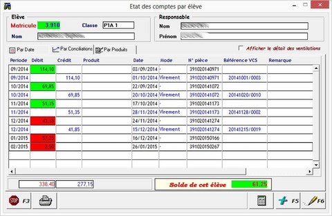 A tout moment, vous pourrez connaître le solde de chaque élève et responsable, les périodes et produits concernés par opération, le montant total des créances ventilés ou non par produit, rechercher un paiement litigieux, envoyer les rappels jusqu'à parfait paiement…